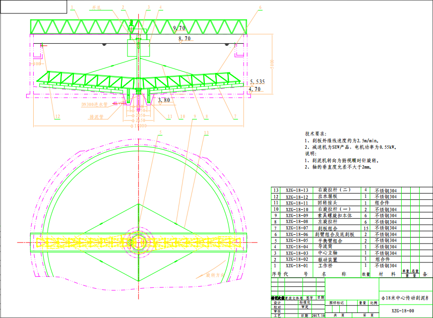 该系列刮泥机结构简单,整台刮泥机的载荷都作用在工作桥架中心,又称悬挂式传动刮泥机,主要由摆线针轮减速机,联轴器,传动主轴、水下轴承、刮臂及刮板等部件组成。该机一般用于池径较小的场合。