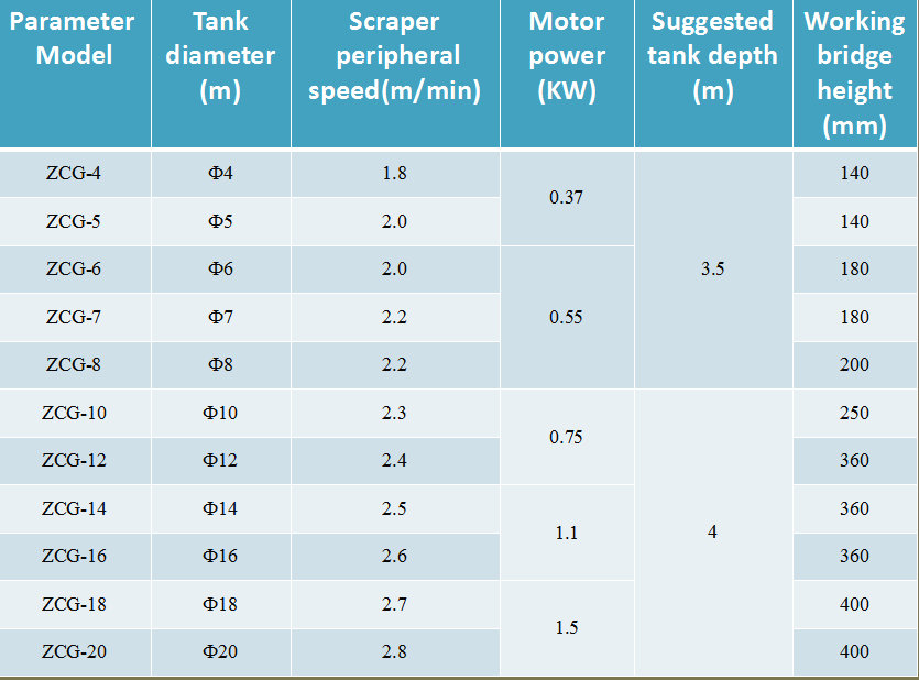 1.污水经中心配水筒布水后均匀向沉淀池四周显幅射状流向溢水槽,随着流速的降低,污水中的悬浮物被分离而沉降于池低,刮臂及刮板由中心驱动机构带动下,定向将污泥括集到中心排泥槽中,靠静水压力将其从污泥管中排出。