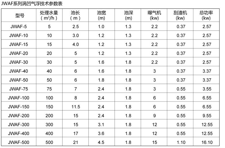 设备占地面积小,减少土建投资。Q=200m3/h的涡凹气浮设备占地面积仅为36.15m2。
